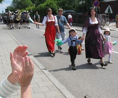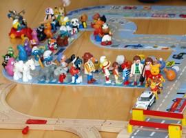 Bei der Feuerwehr haben wir nicht nur ganz viele Feuerwehrautos gesehen, sondern auch einen großen Festumzug. Das haben wir dann zu Hause mit unseren Figuren und Autos gleich nachgespielt. Und dann durften wir bei dem anderen Fest sogar selbst bei dem Umzug mitgehen. Das war richtig toll. So viele Menschen haben uns zugewunken und gleich hinter uns ging eine Musikkappelle - richtig schön.