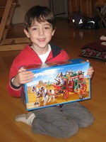 Wir waren ja vorher ganz schön aufgeregt – vor allem Sebastian. Aber im Lauf des Nachmittags hat sich das dann gelegt. Unser Geburtstag war sehr schön mit Kuchen im Kindergarten und danach waren beide Omas bei uns. Geschenke haben wir auch ganz viele bekommen. Stefanie einen Krankenwagen von Playmobil und Sebastian das große Piratenschiff. Dazu noch Bücher, Figuren und: Geldbeutel und Sparschweine, weil wir seit unserem Geburtstag jede Woche Taschengeld bekommen.