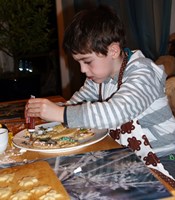 Und unsere Oma hat uns schöne Servietten mitgebracht. Sebastian gefallen seine so gut, dass er von sich aus gleich gesagt hat, dass er die nur Samstags verwendet - damit er sie länger hat. Und als er an einem Montag ein klein wenig gekleckert hatte, war seine erste Frage, ob Samstag sei - und er war dann erleichtert, dass er keine von seinen schönen Servietten verwenden "musste".
