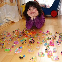 Stefanie liebt es, Armbänder aus Gummiringen zu machen. Dazu zieht sie sich am liebsten in ihre Kuschelhöhle zurück und macht dann ganz in Ruhe diese Armbänder, die sie dann auch gerne verschenkt.