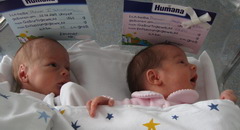 Die beiden Kinder wurden uns nur ganz kurz gezeigt und dann sofort zu den Kinderärzten gebracht. Aber uns wurde sehr bald gesagt, dass es den beiden soweit gut geht und sie jeweils knapp 2 kg haben.