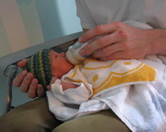 Wir Eltern waren sehr nervös - und es ist unbeschreiblich, was in uns vorging, als wir den ersten zaghaften Schrei unserer Tochter hörten! Die Anspannung, die sich in den letzten Jahren, Monaten, Wochen und zuletzt Stunden immer mehr zugespitzt hatte, fiel von uns ab.